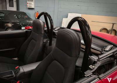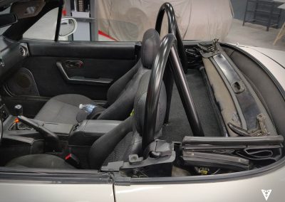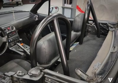 Nuevas barras antivuelco de Doble Arco para Mazda MX5 NA y NB. Fabricadas en tubo de 40×2 y acabado en negro satinado. 8 puntos de fijación al chasis. Incluye tornillería y pletinas para su instalación.
