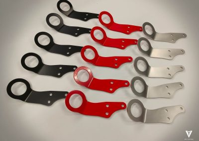Tow Hook específico para Mazda MX5 na/nb. Fabricado en acero inox de 5mm de grosor está disponible en acabado satinado,powder coating negro y powder coating rojo.